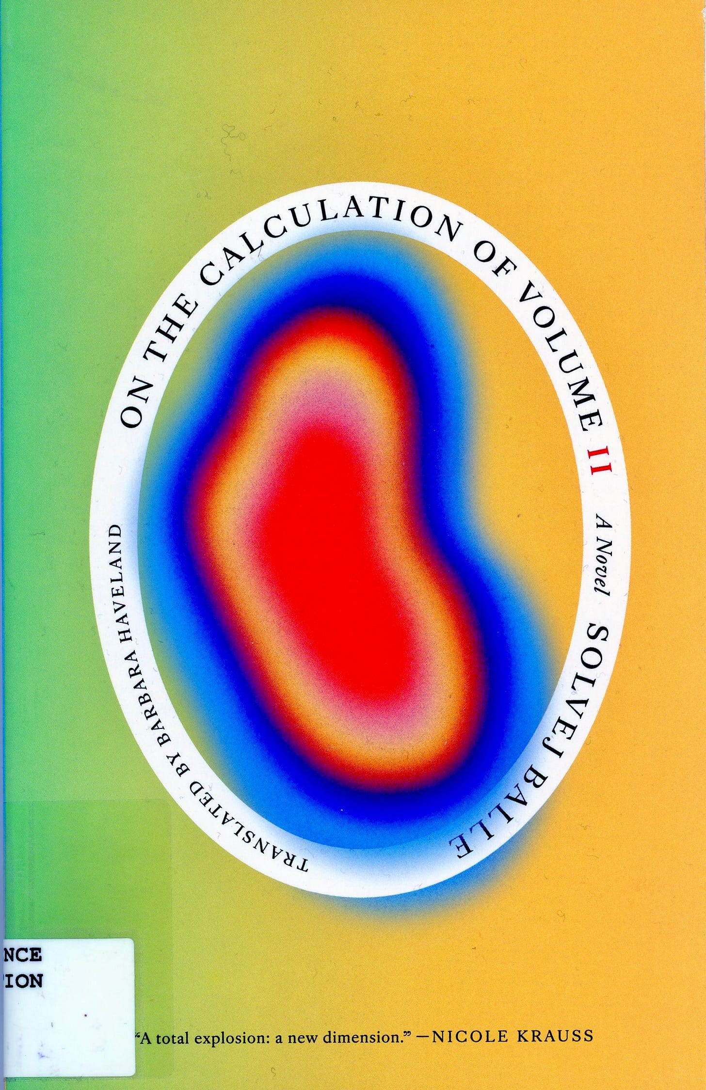 I am sitting at my desk by the window. Two paperweights reflect the light. One is royal blue and is shaped like an egg. The other is round and full of yellow and orange fireworks. Soon I will go out and see if my car door is frozen. But right now, in this moment, which will end soon, I am writing about Solvej Balle in an imitation of her style. The difference between her and me, and it is a big difference, since not all differences are the same, since differences can also be as small as in whether I describe the round paperweight or the egg-shaped one, the big difference between Balle and me is that I am not writing Volume II of On the Calculation of Volume translated by Barbara Haveland. I am also not her hapless yet curious protagonist who is stuck in time and lives through November 18th every day.